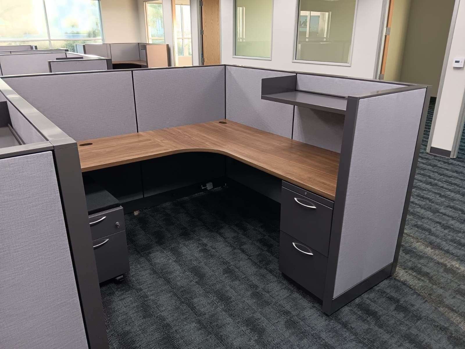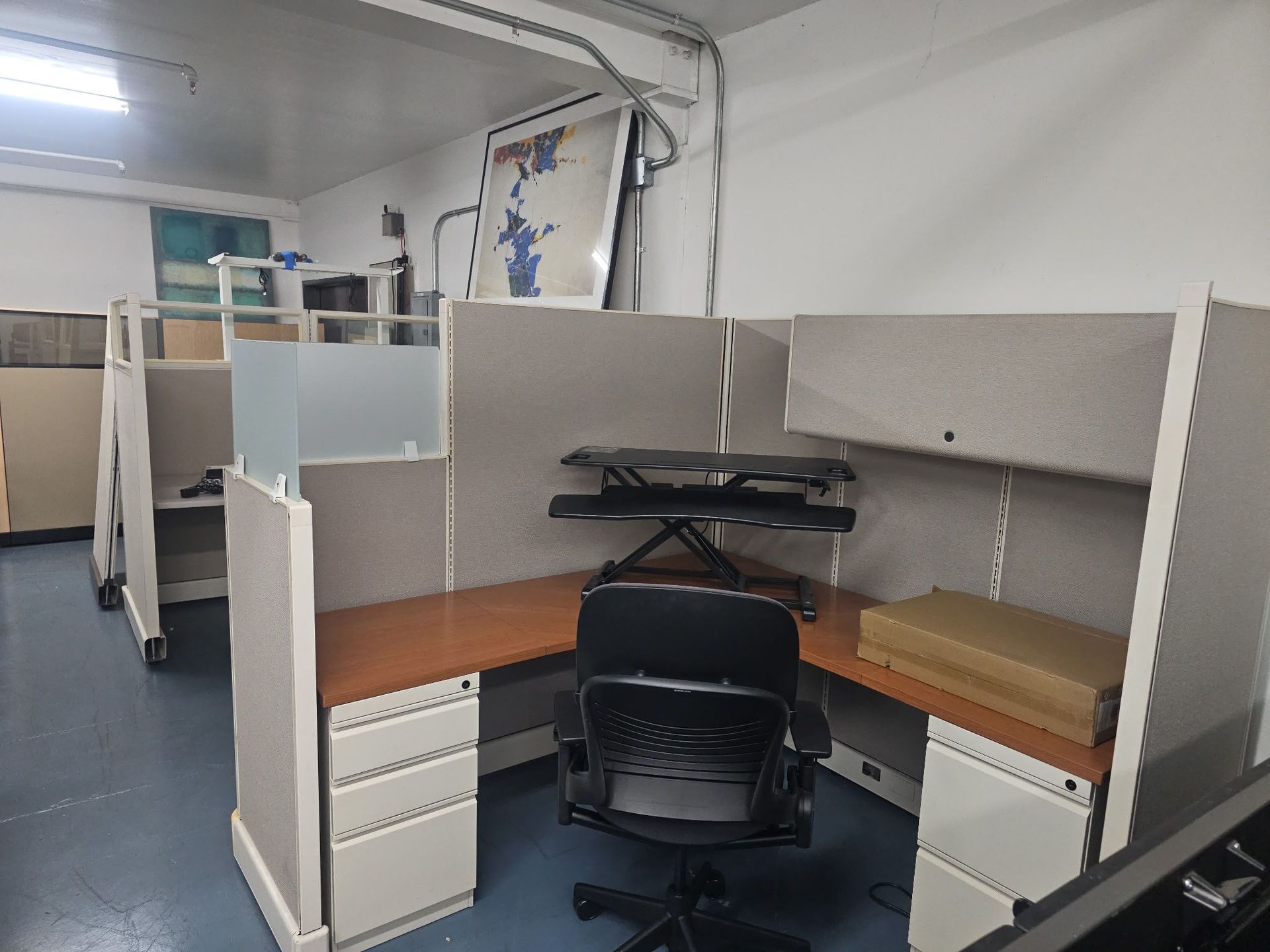 Can make 6 x 6, 5 x 6 or 6 x 5 cubicles, has shelf and one or two file cabs
