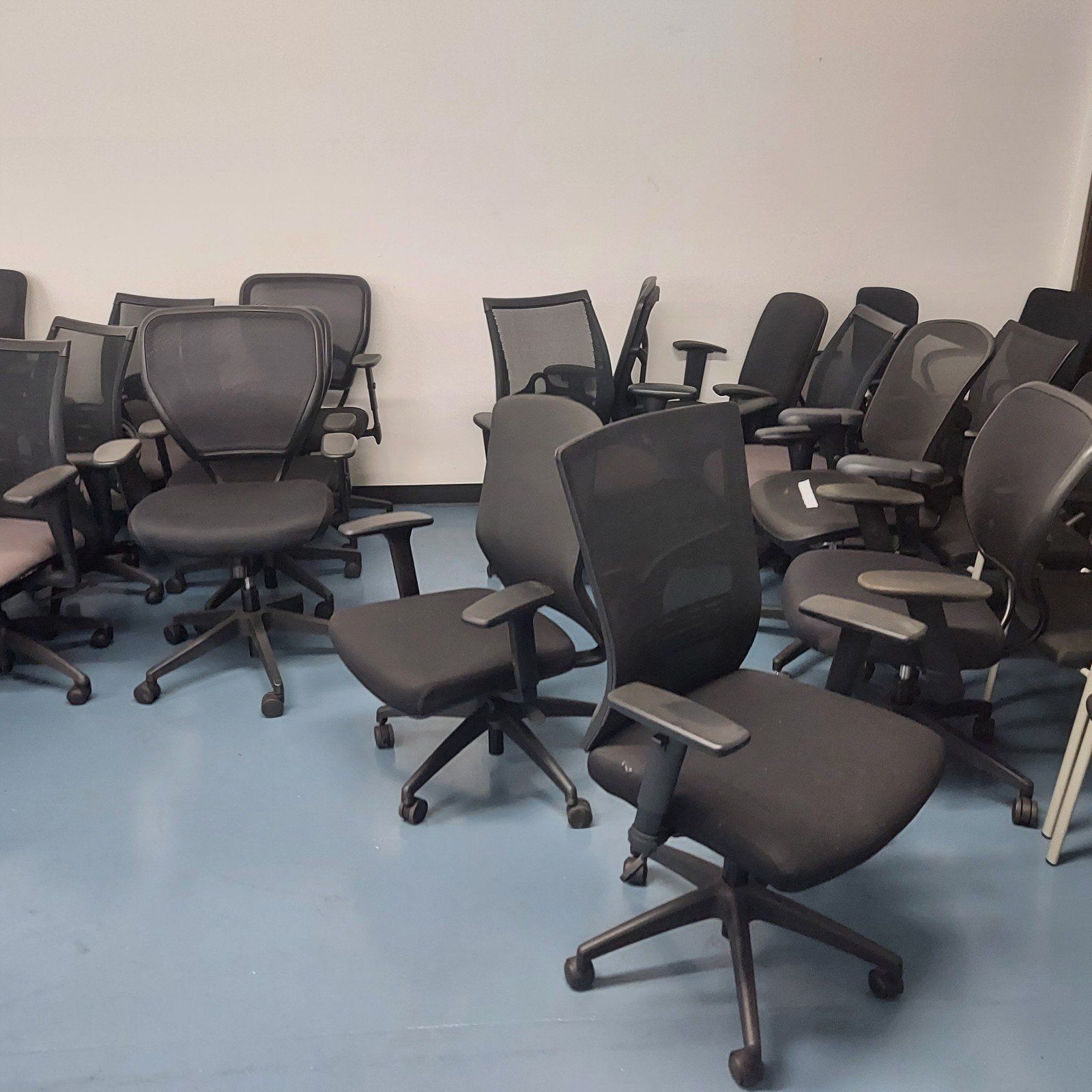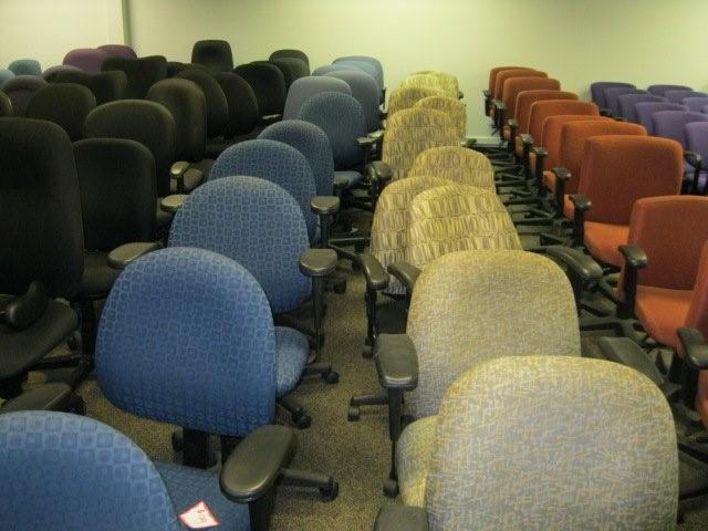 (250) chairs. Approx 150 task and management chairs and 100 assorted guest, conference and task chairs.